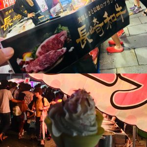 去年、仙台牛タン串がおいしかったので今年も同じおじちゃんがやっている出店で牛タン串(なぜか今年は長崎でしたが笑)を食べて、熊野大社でお参りし、また同じ店で牛カルビ串を買いました🍖笑
