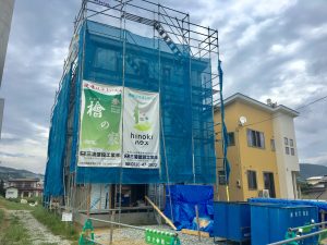 建設中の内部は、弊社の特徴である『ひのき柱』の太さがとても分かりやすいので、施主様にもぜひご見学してくださいねとお声がけさせていただいております👐🍀