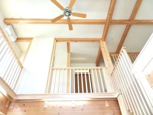 そして3階の秘密基地へと繋がる、自然素材で統一した吹き抜け階段が…