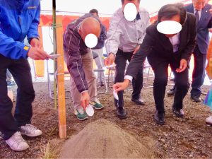 設計士が「鎌」でその土地で初めて草を刈り、施主様が「鍬(くわ)」で初めて土をおこし、施工会社が「鍬(すき)」で初めて土ならしを行います。